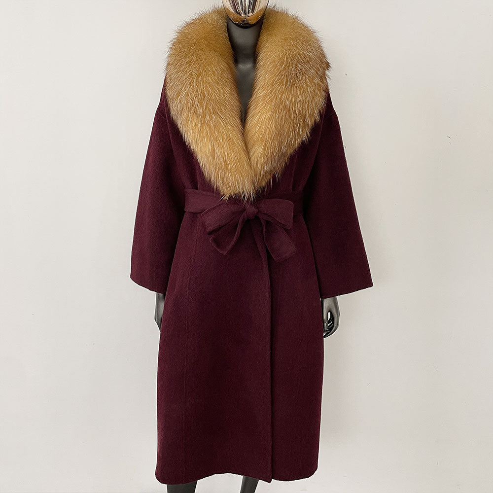Högkvalitativ koreansk version kappa 2025 ullrock fashionabla smal passande kappa bandad dubbelsidig ullrock dam