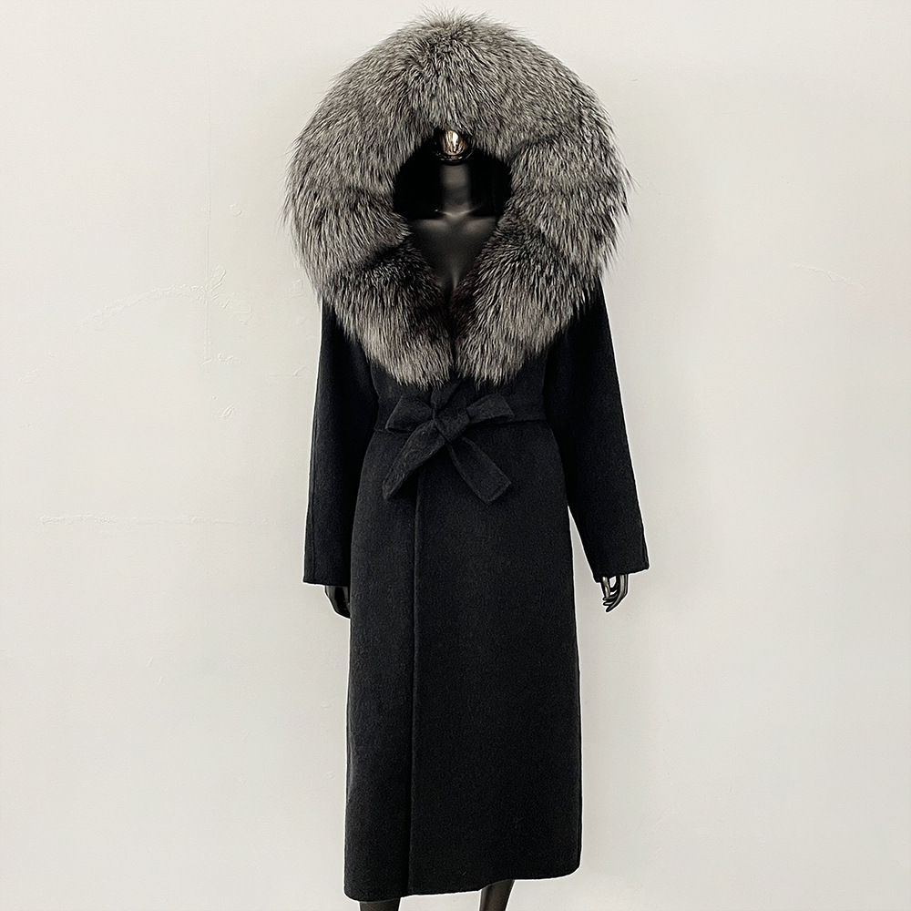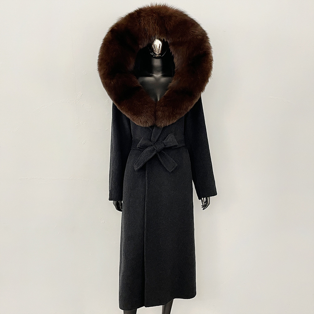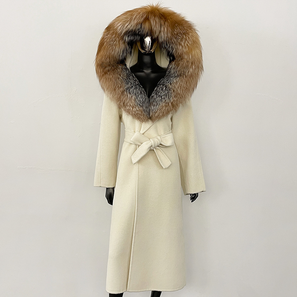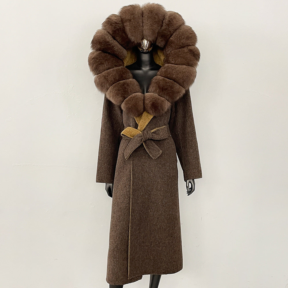 2025 autumn and winter new high-end coat mink woolen coat women's lace-up high-quality double-sided woolen coat