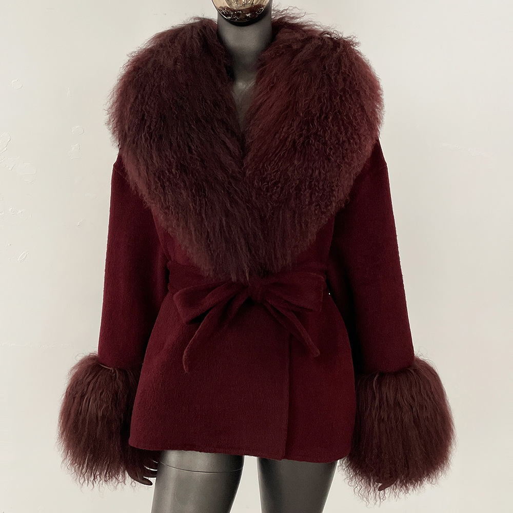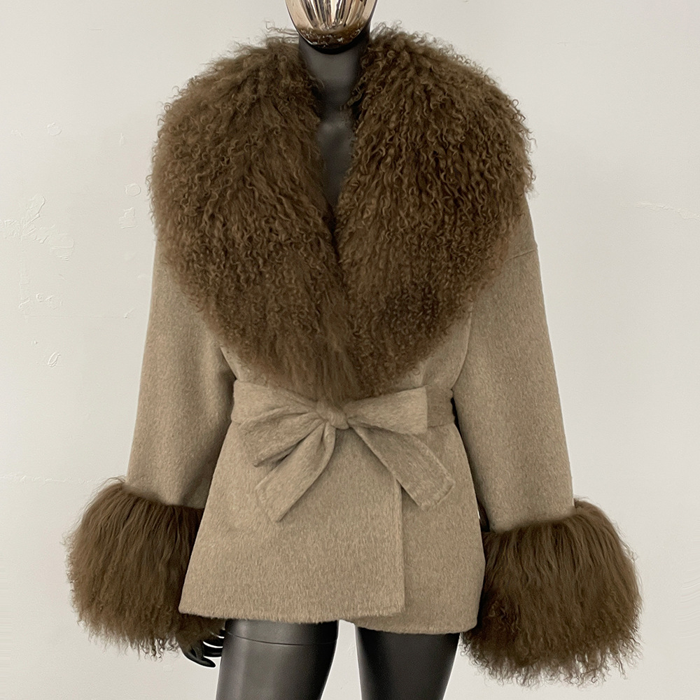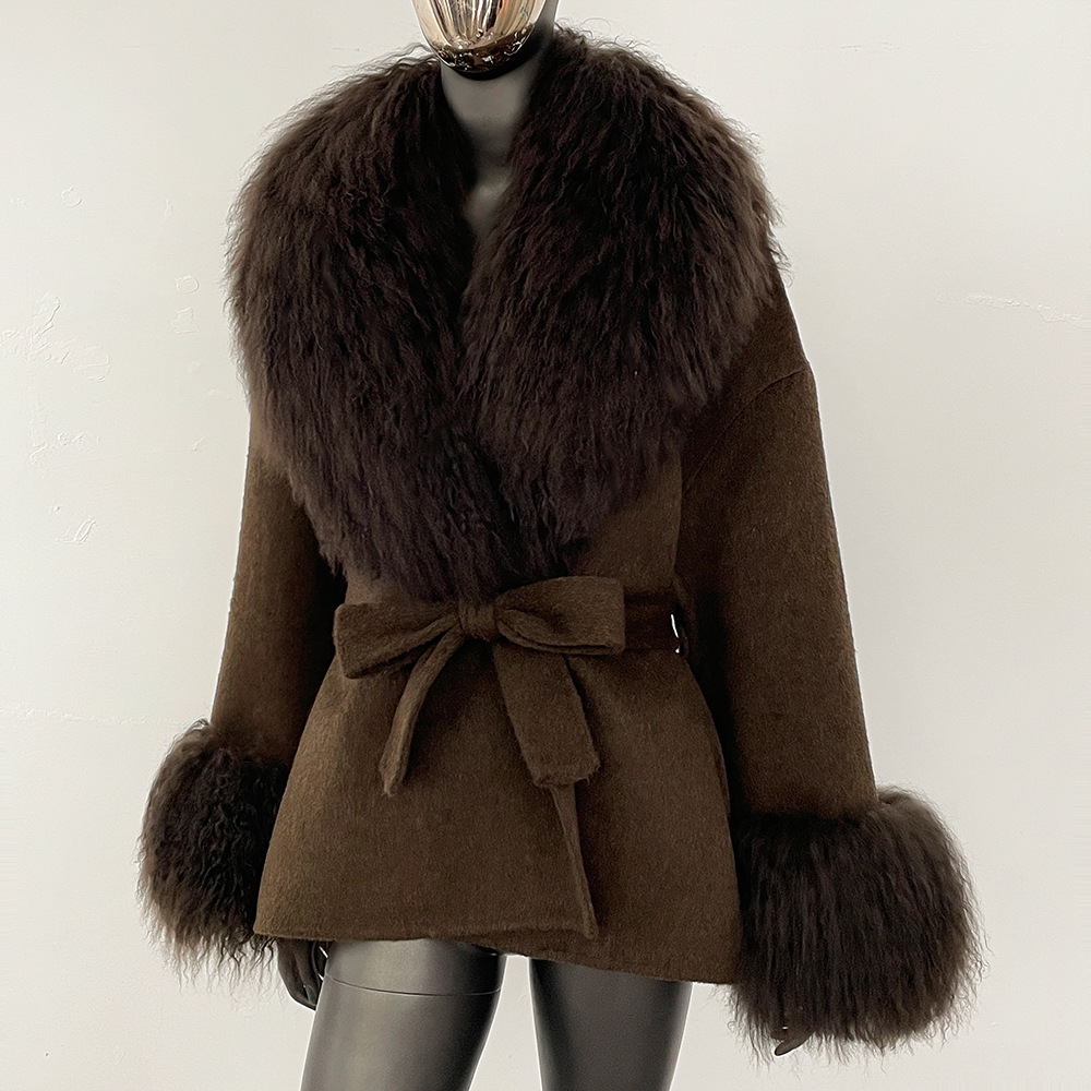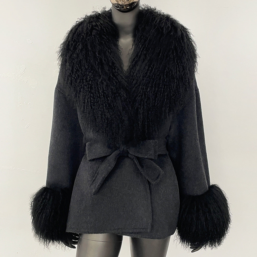 2025 new high-end autumn and winter woolen double-sided cashmere coat fashionable versatile beach wool collar jacket women