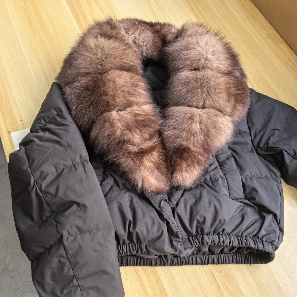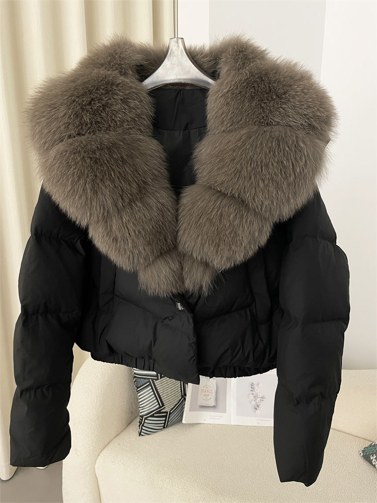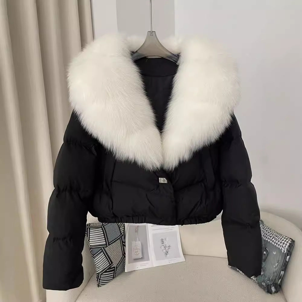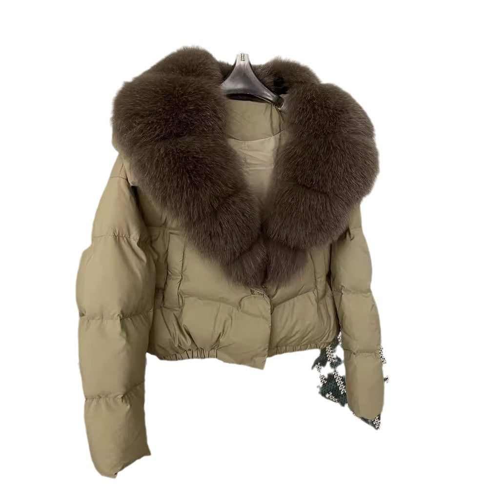25 Vinter nya kvinnors korta mode varm dunjacka liten utländsk stil överdimensionerad äkta räv päls krage jacka
