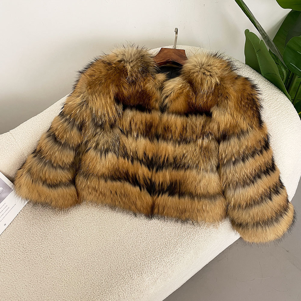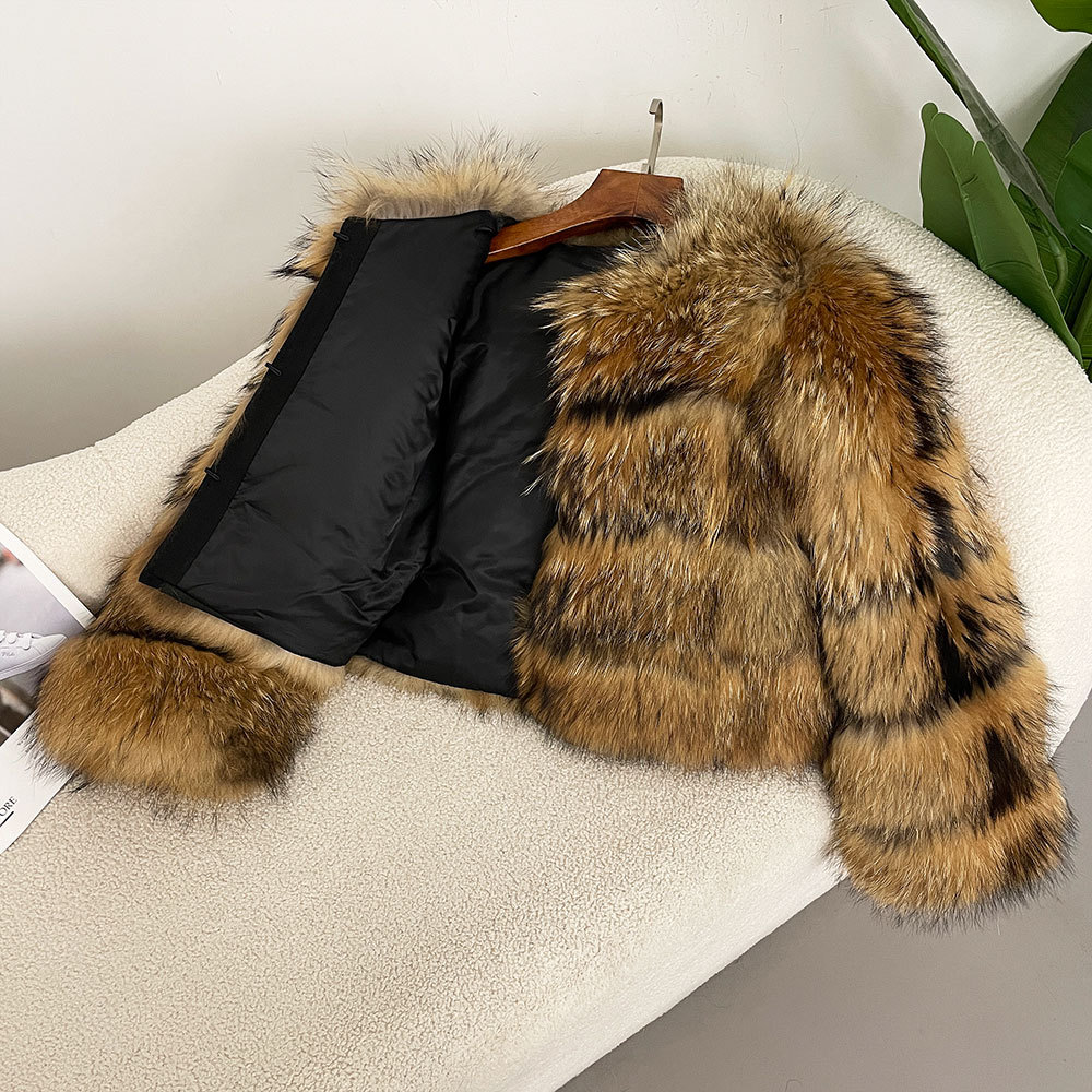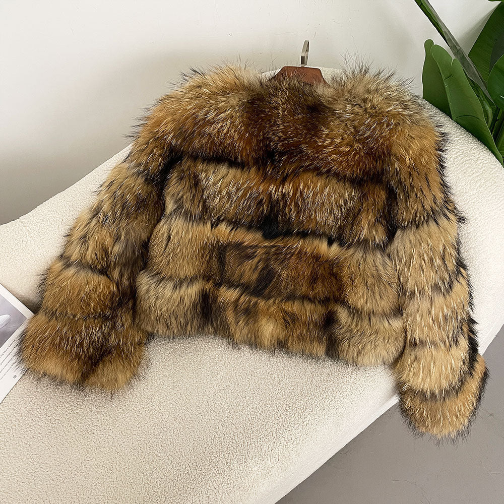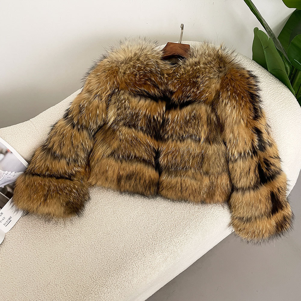 Europeisk och amerikansk vinter ny päls kvinnors korta riktiga tvättbjörn hår mode varm päls päls integration