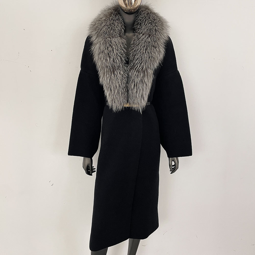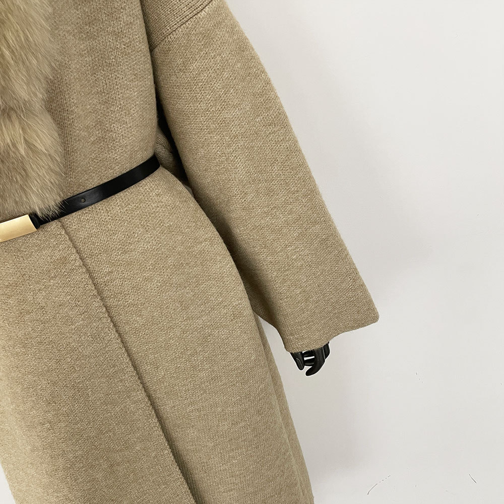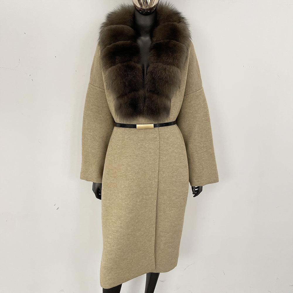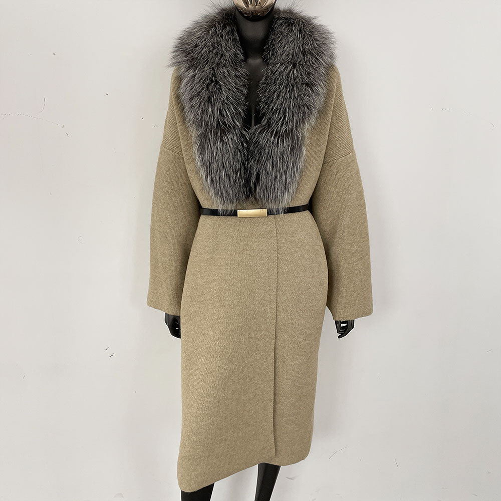 Förtjockad lång räv pälskrage europeisk och amerikansk ny lat stil mode kofta stickad tröja jacka kvinnor