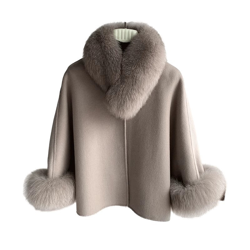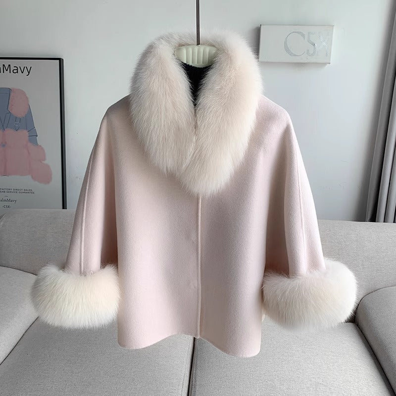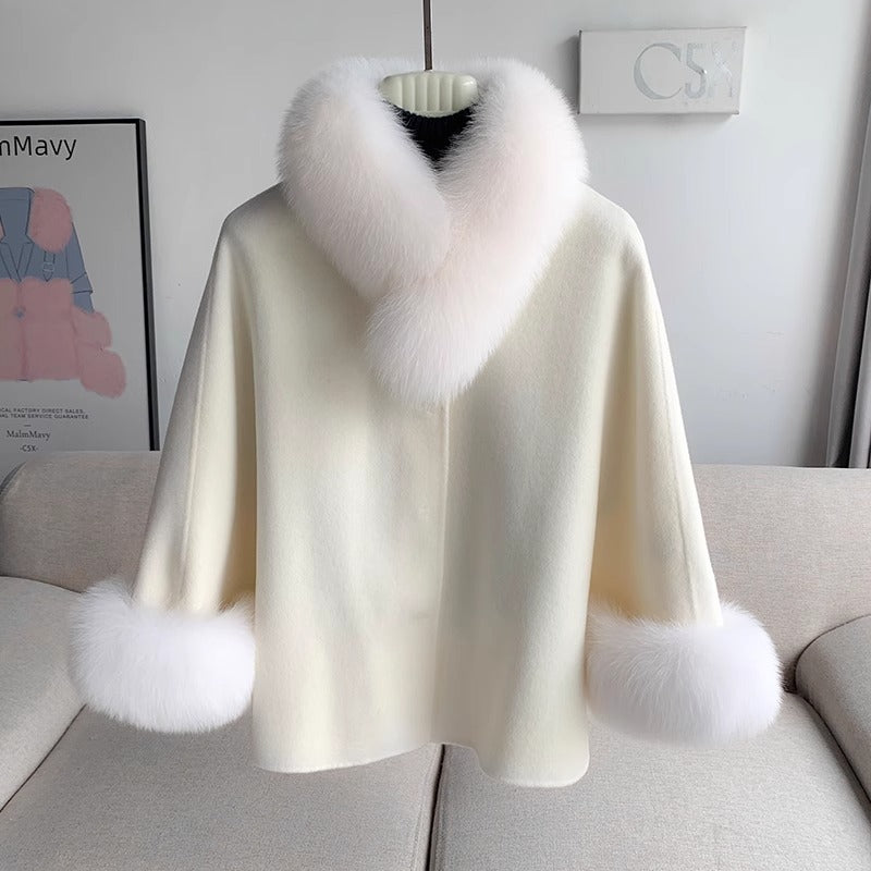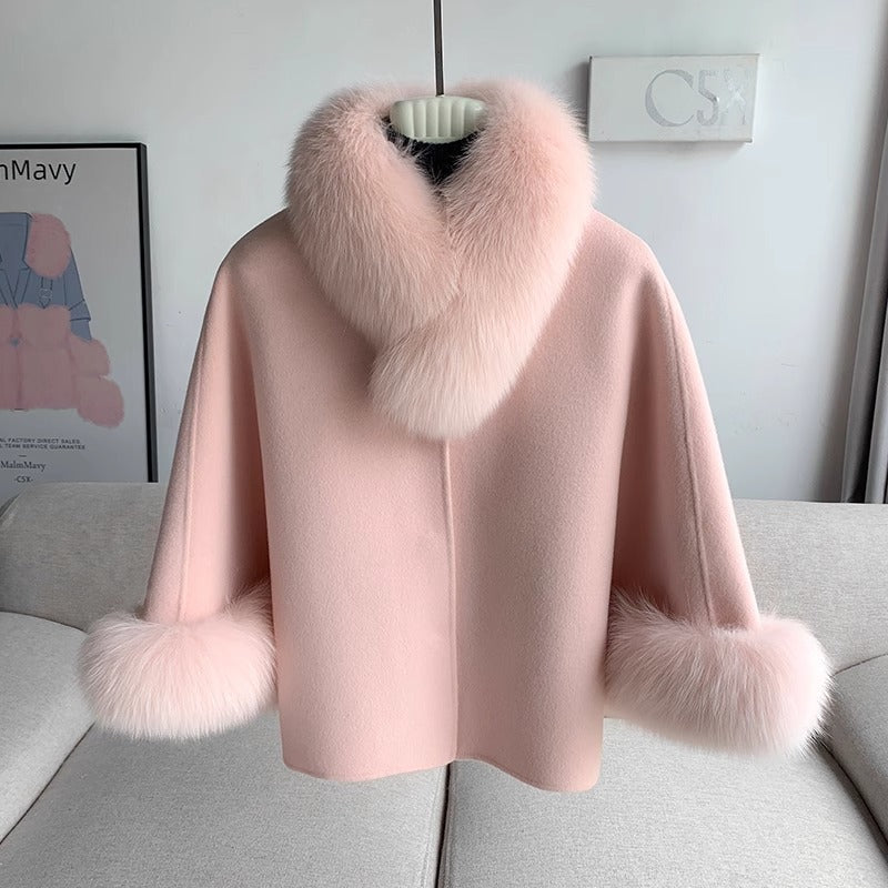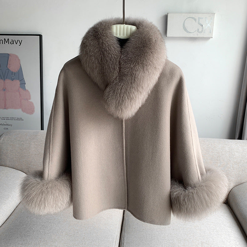 Fox päls jacka kvinnor kort 2024 nya dubbelsidig ull avtagbar sjal