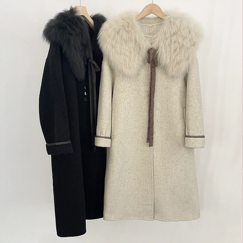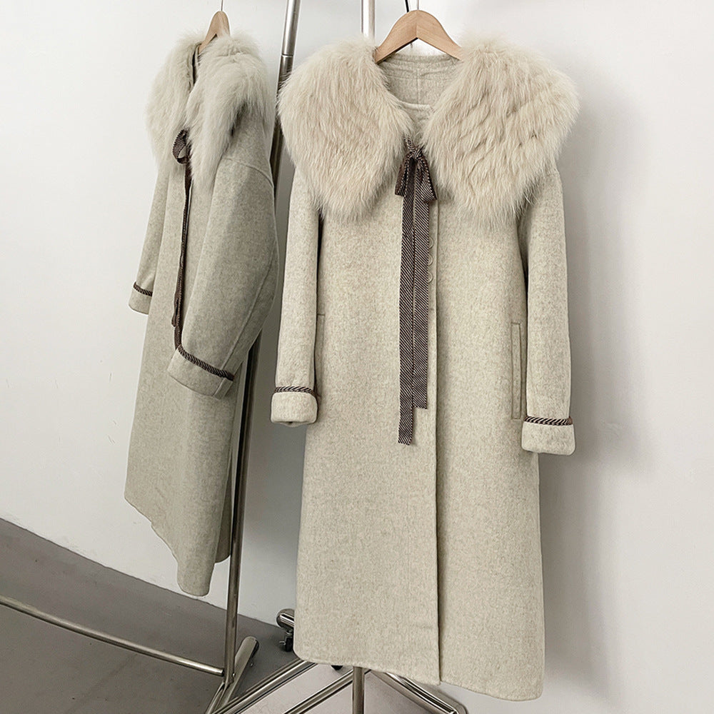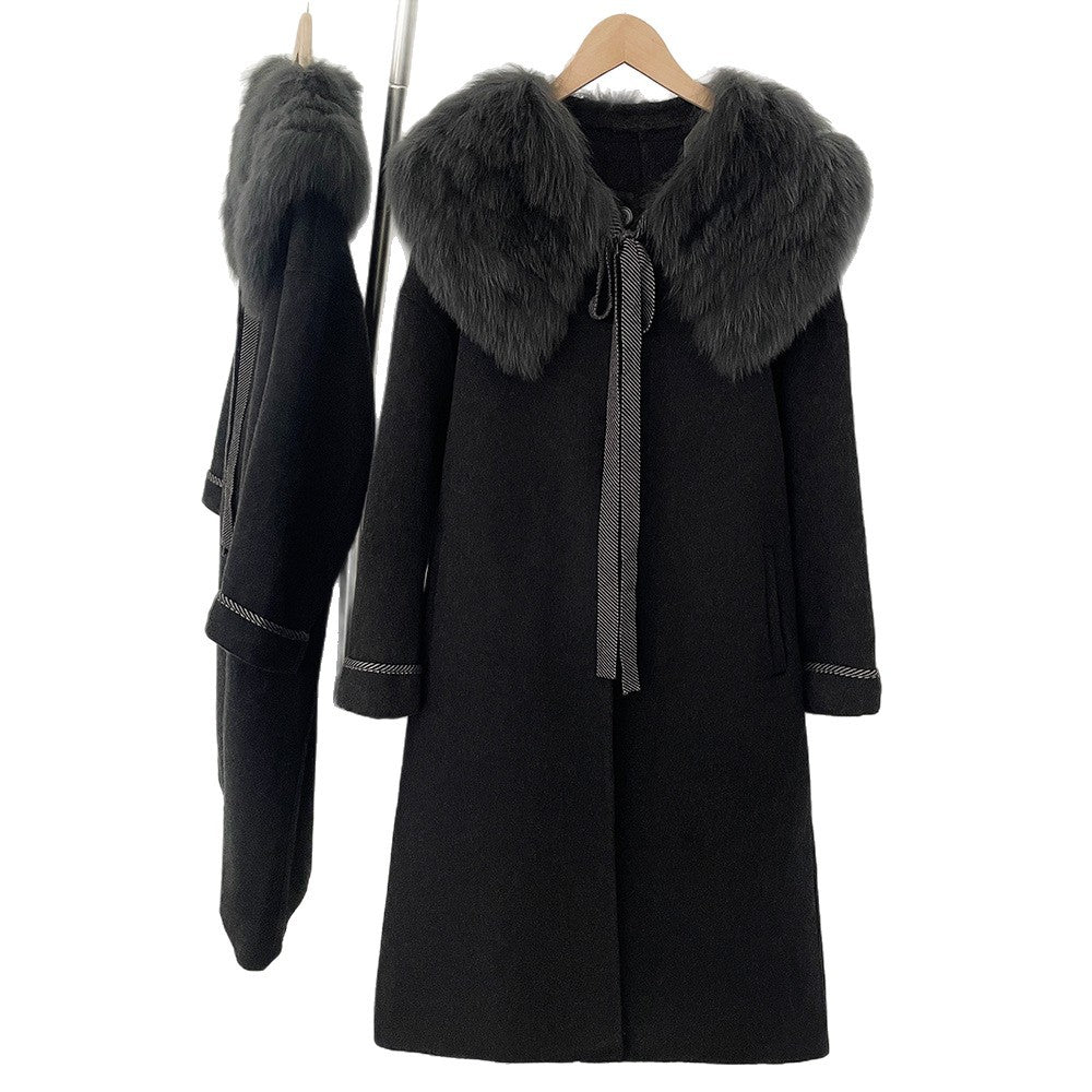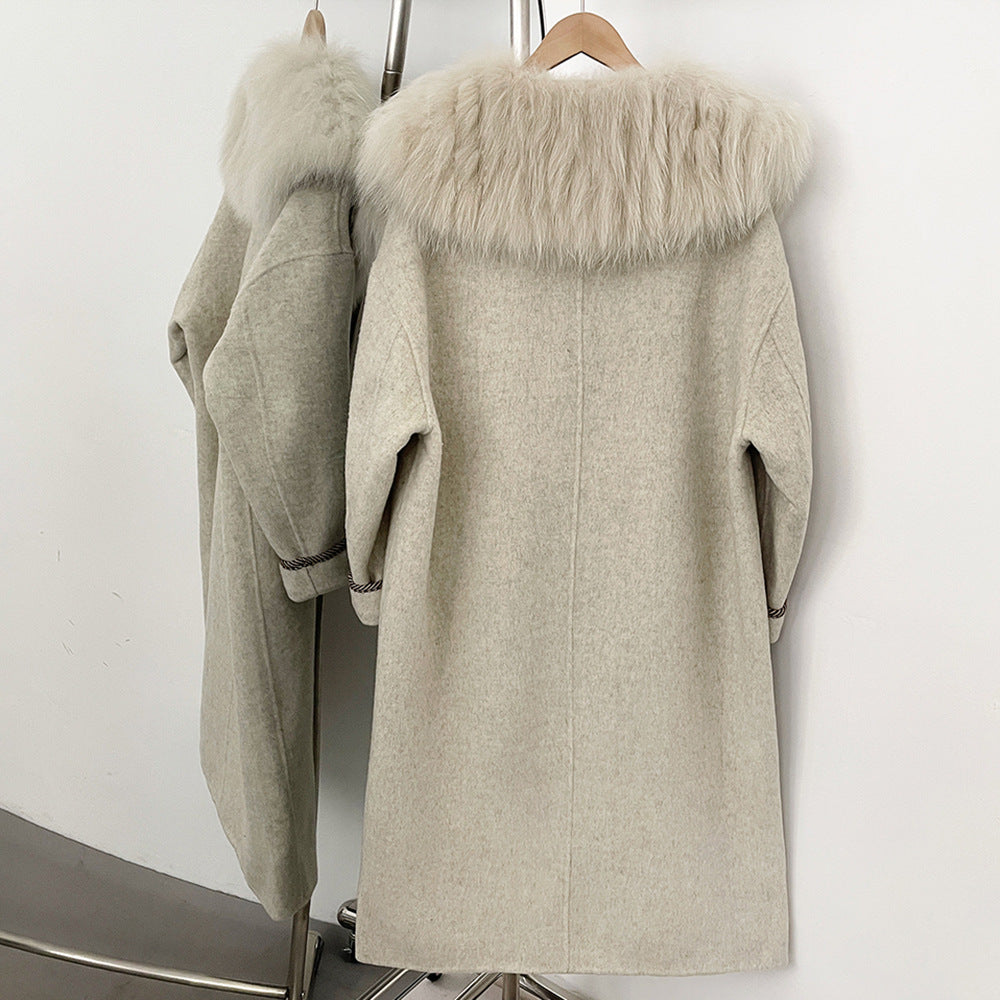 High sense college stil ullrock 2025 höst och vinter nytt rävhår dubbelsidig ull ull päls kvinnor