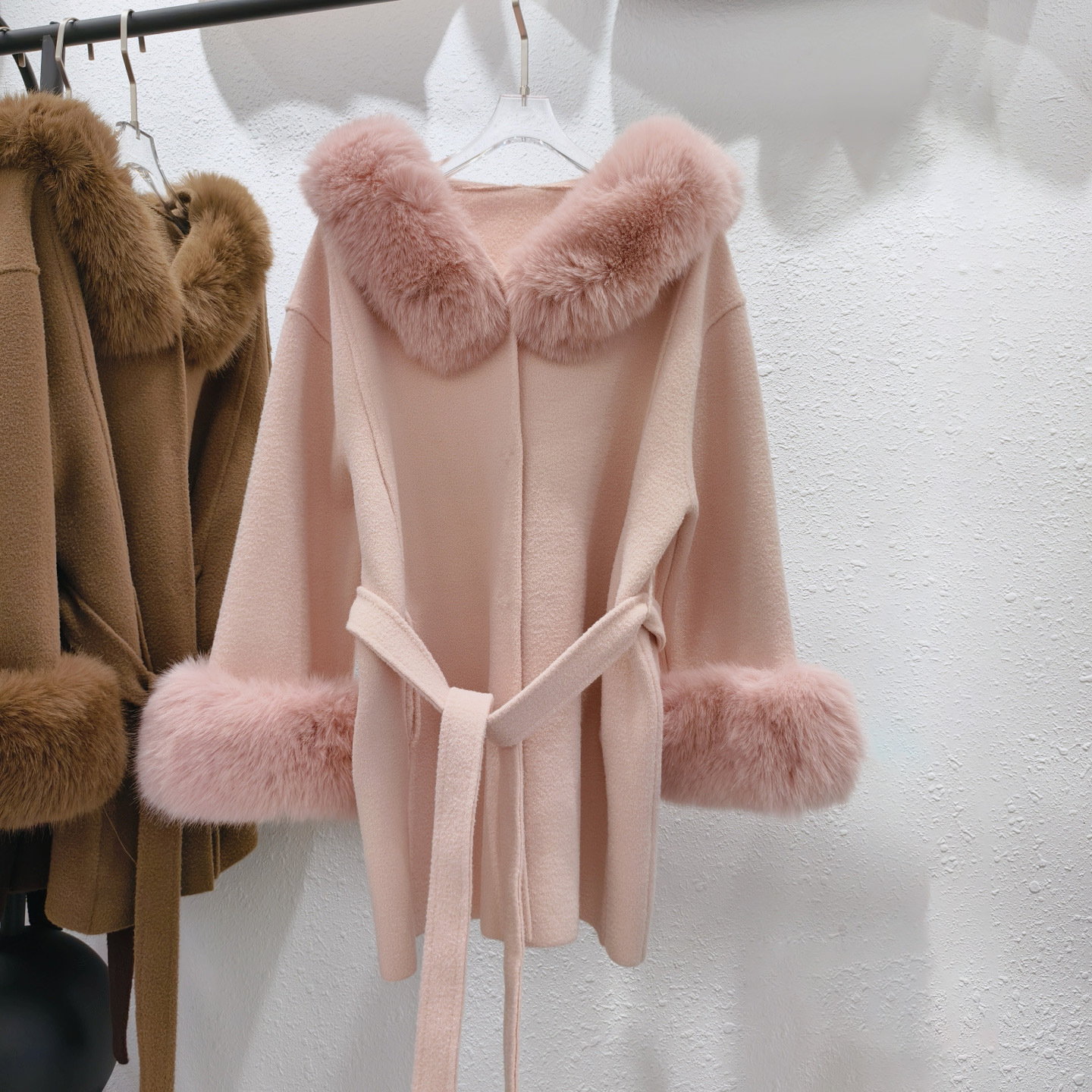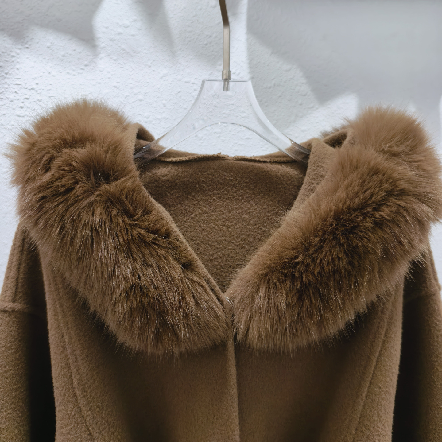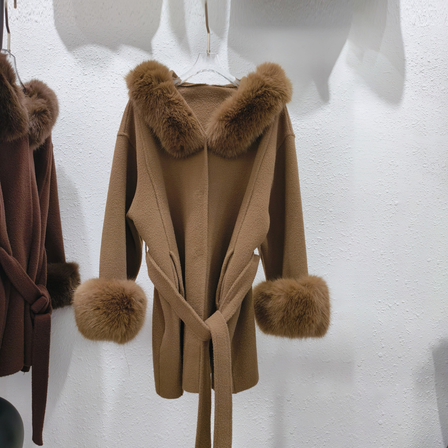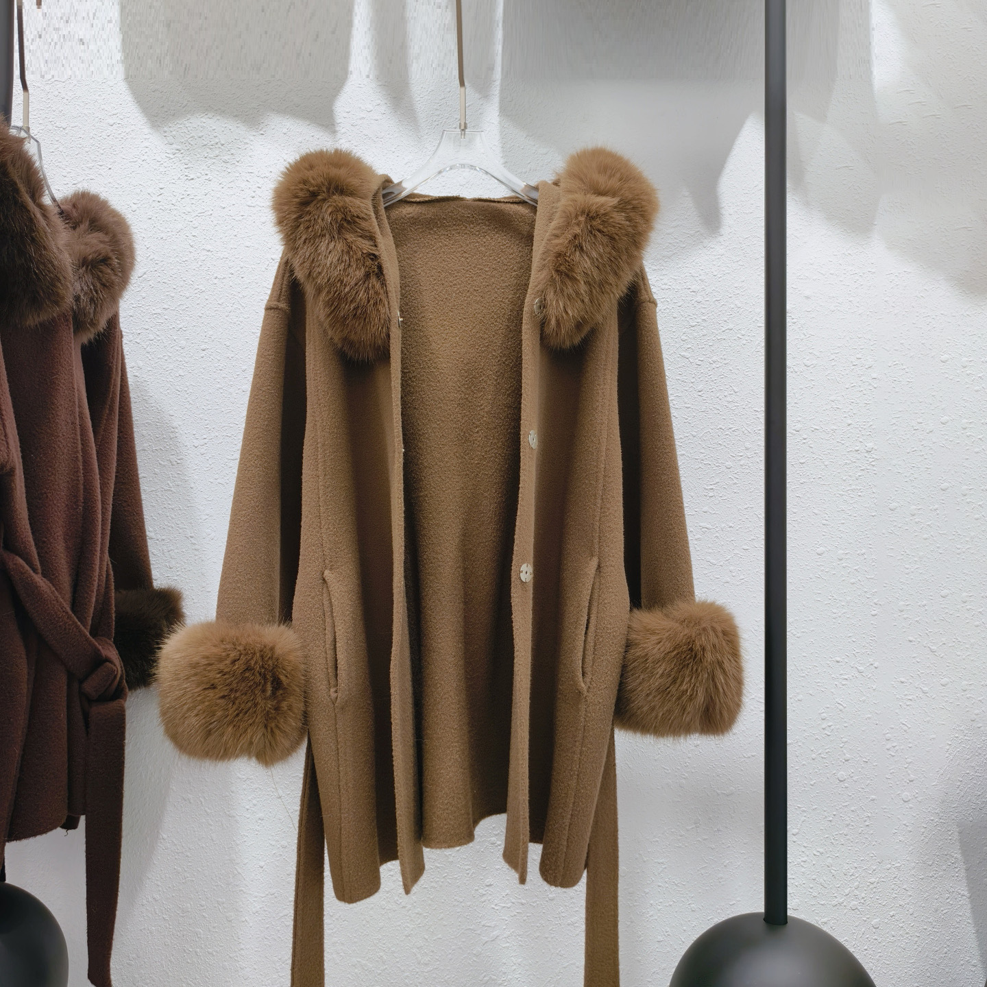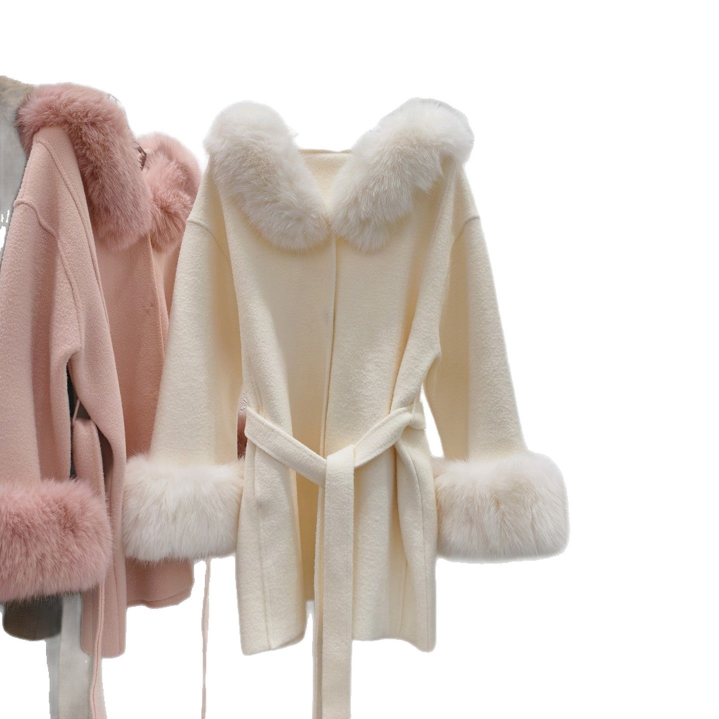 Stickad dubbelsidig ullrem sjalrock socialite höst- och vinterimitation rävpälskrage huva kofta ulljacka