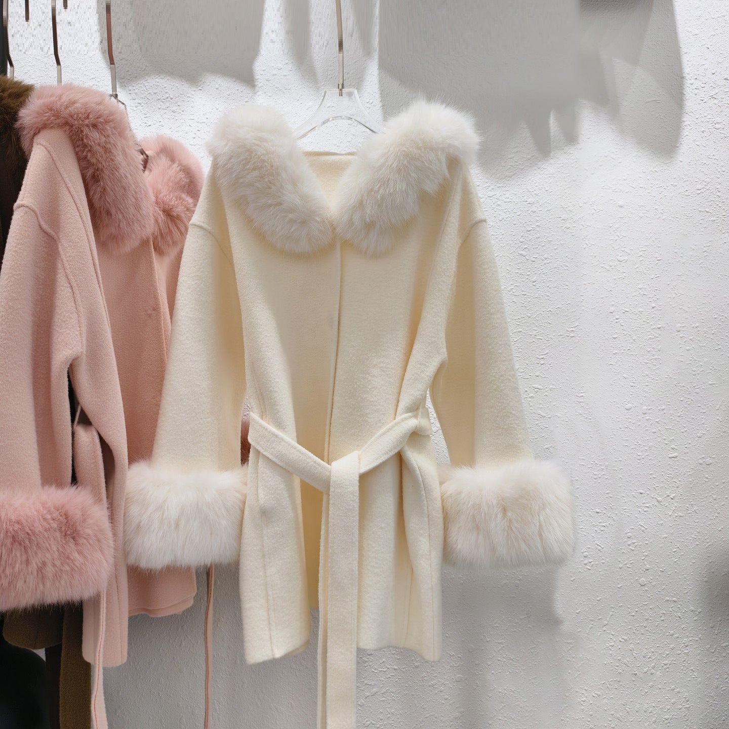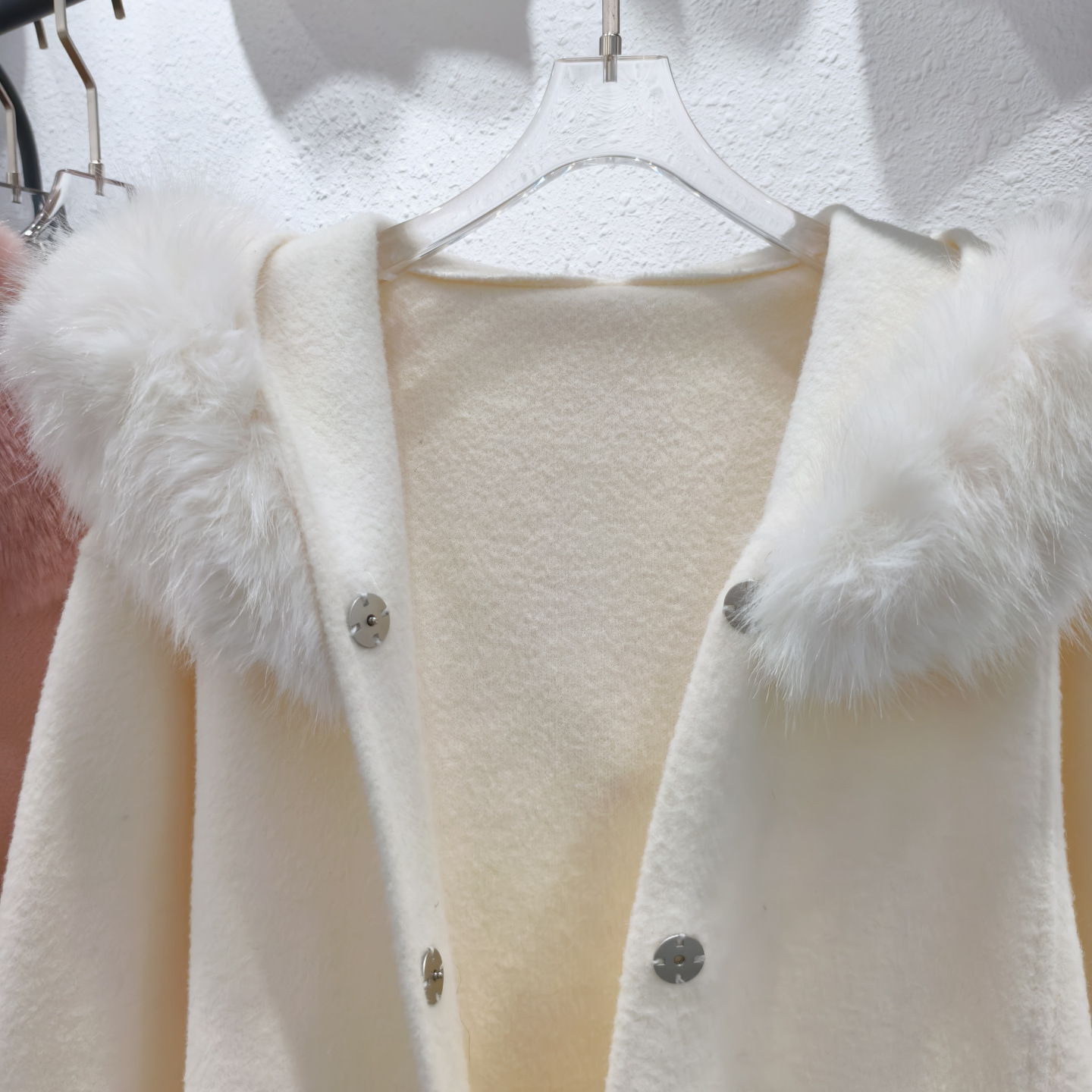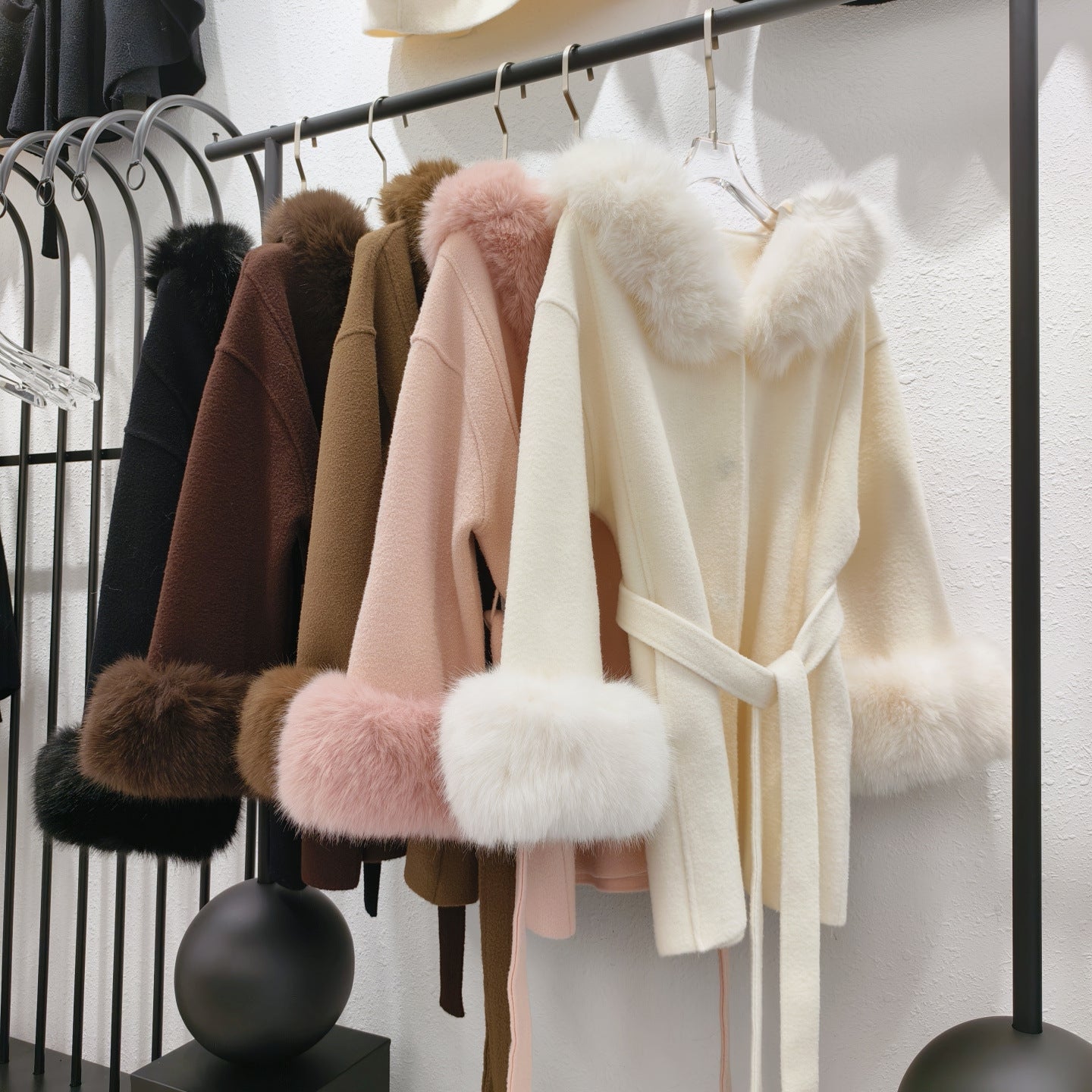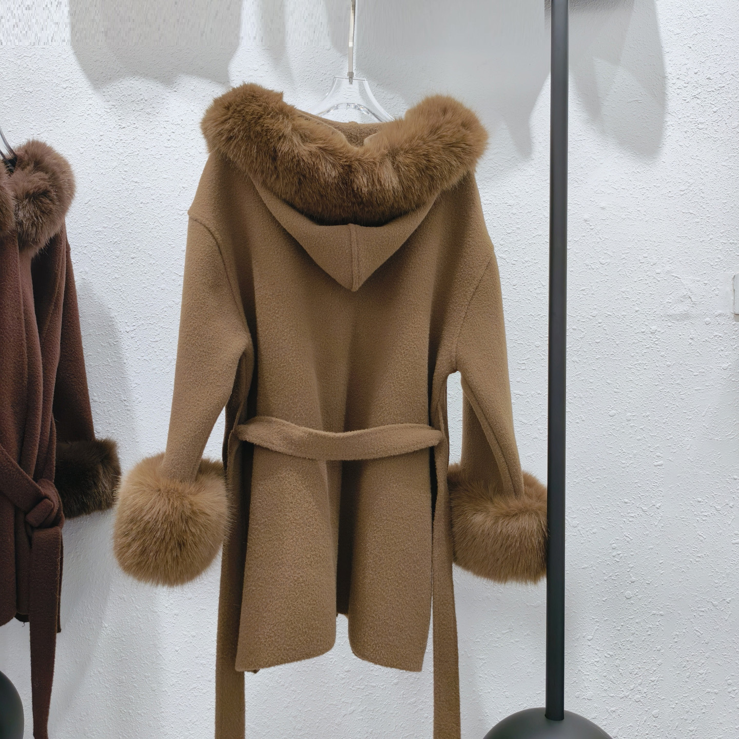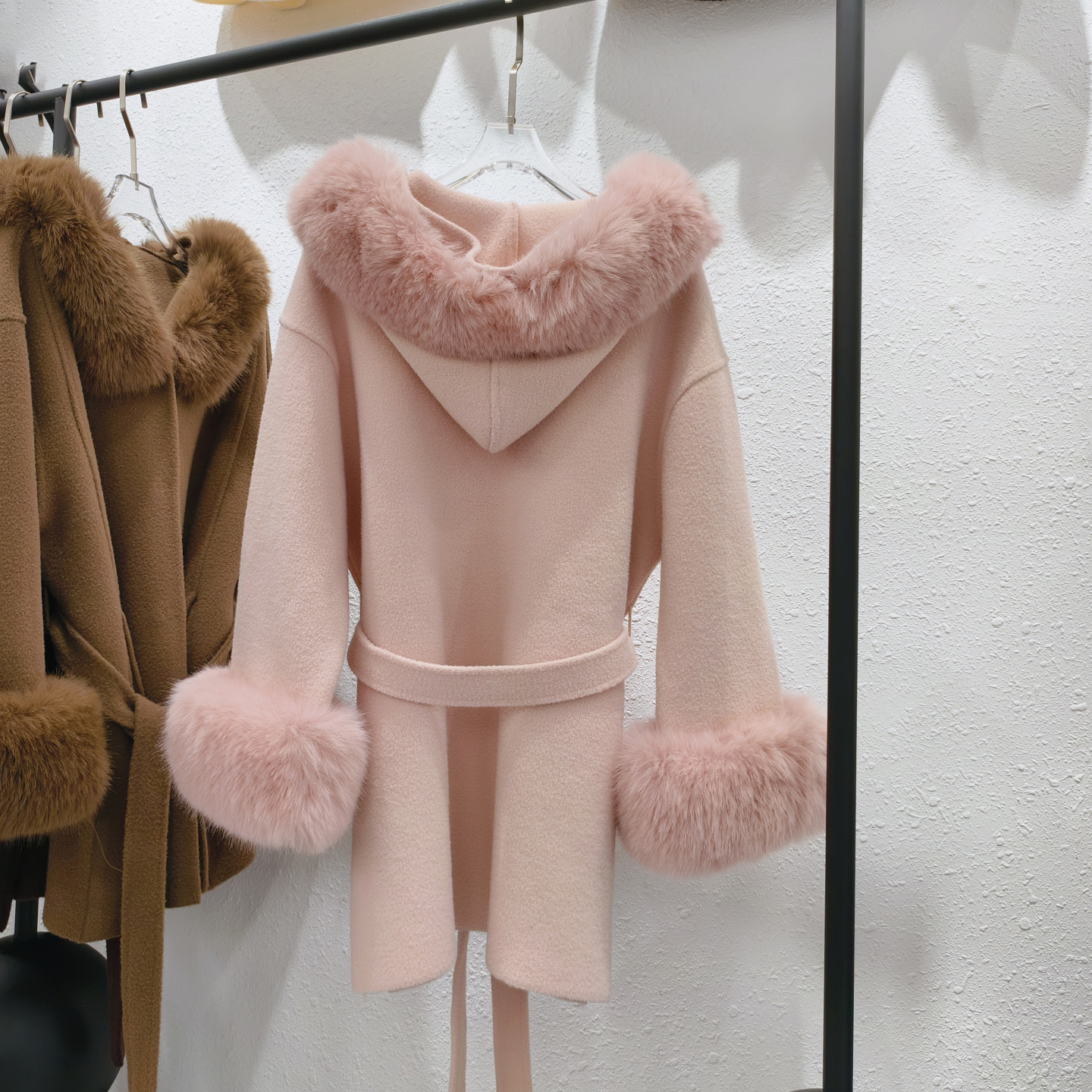 Stickad dubbelsidig ullrem sjalrock socialite höst- och vinterimitation rävpälskrage huva kofta ulljacka