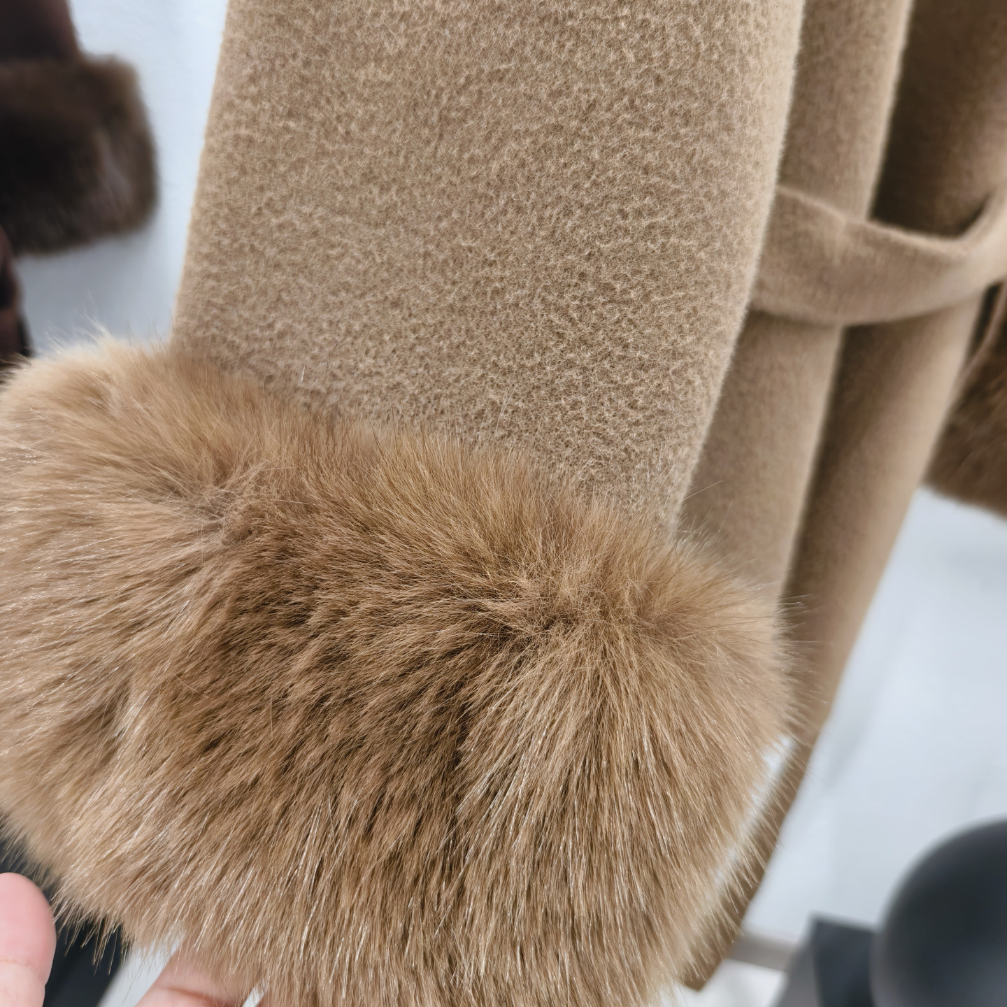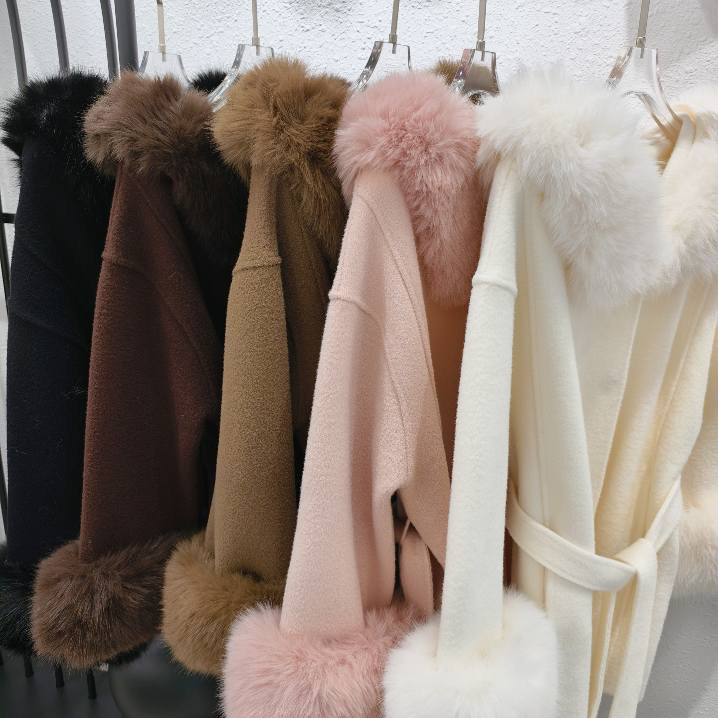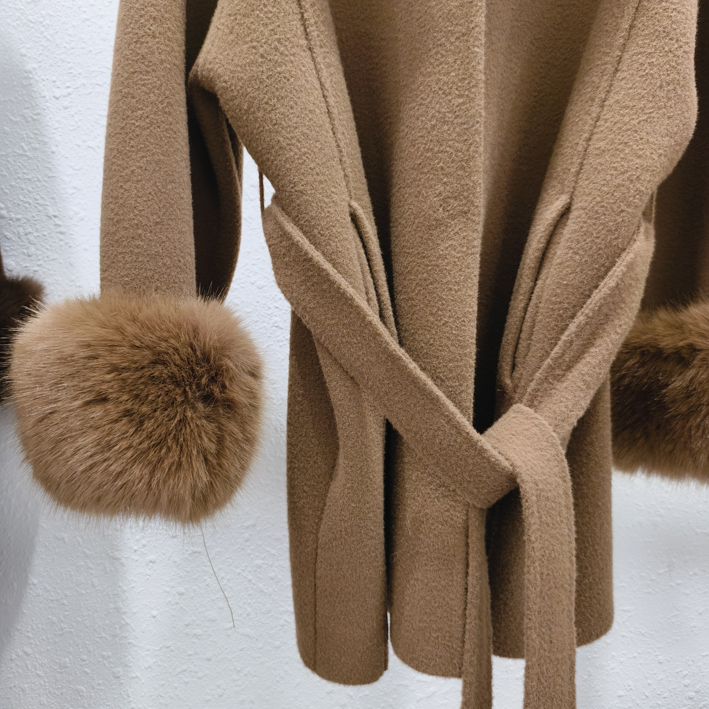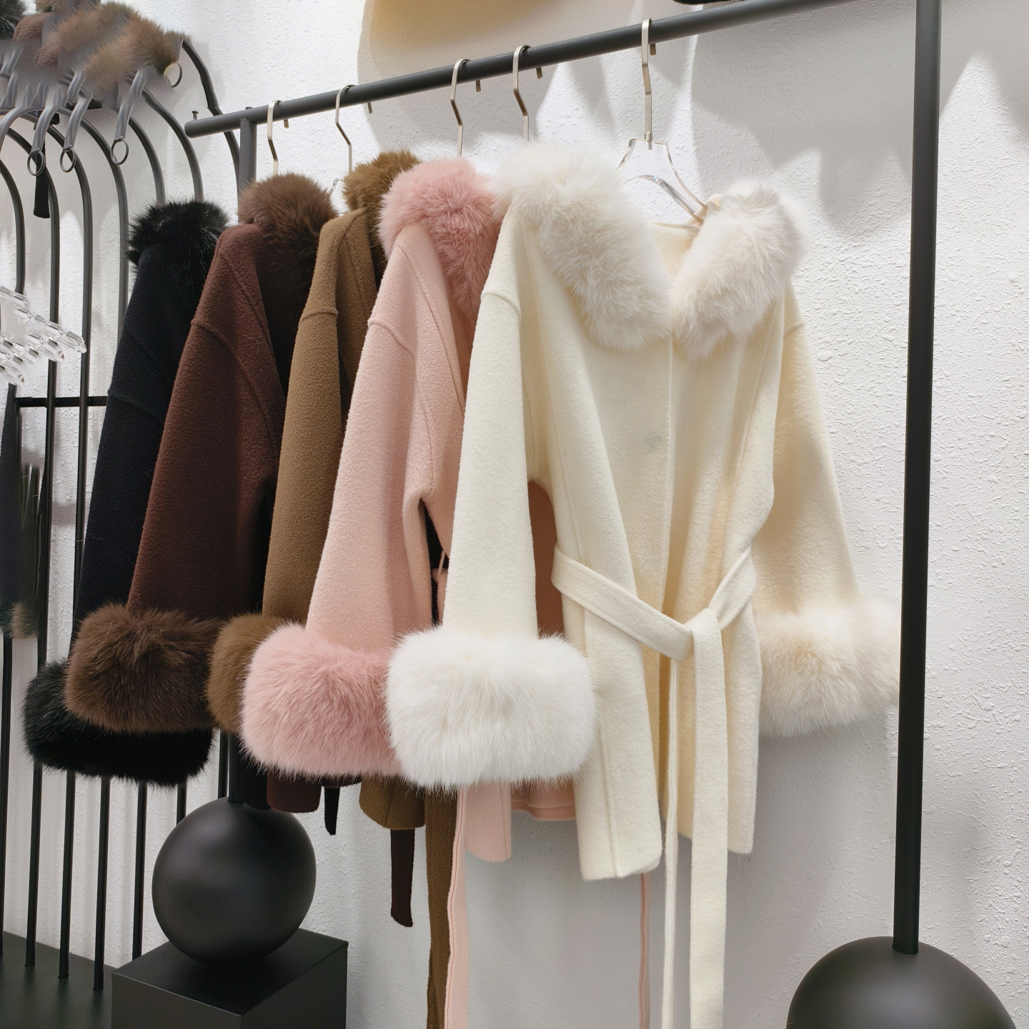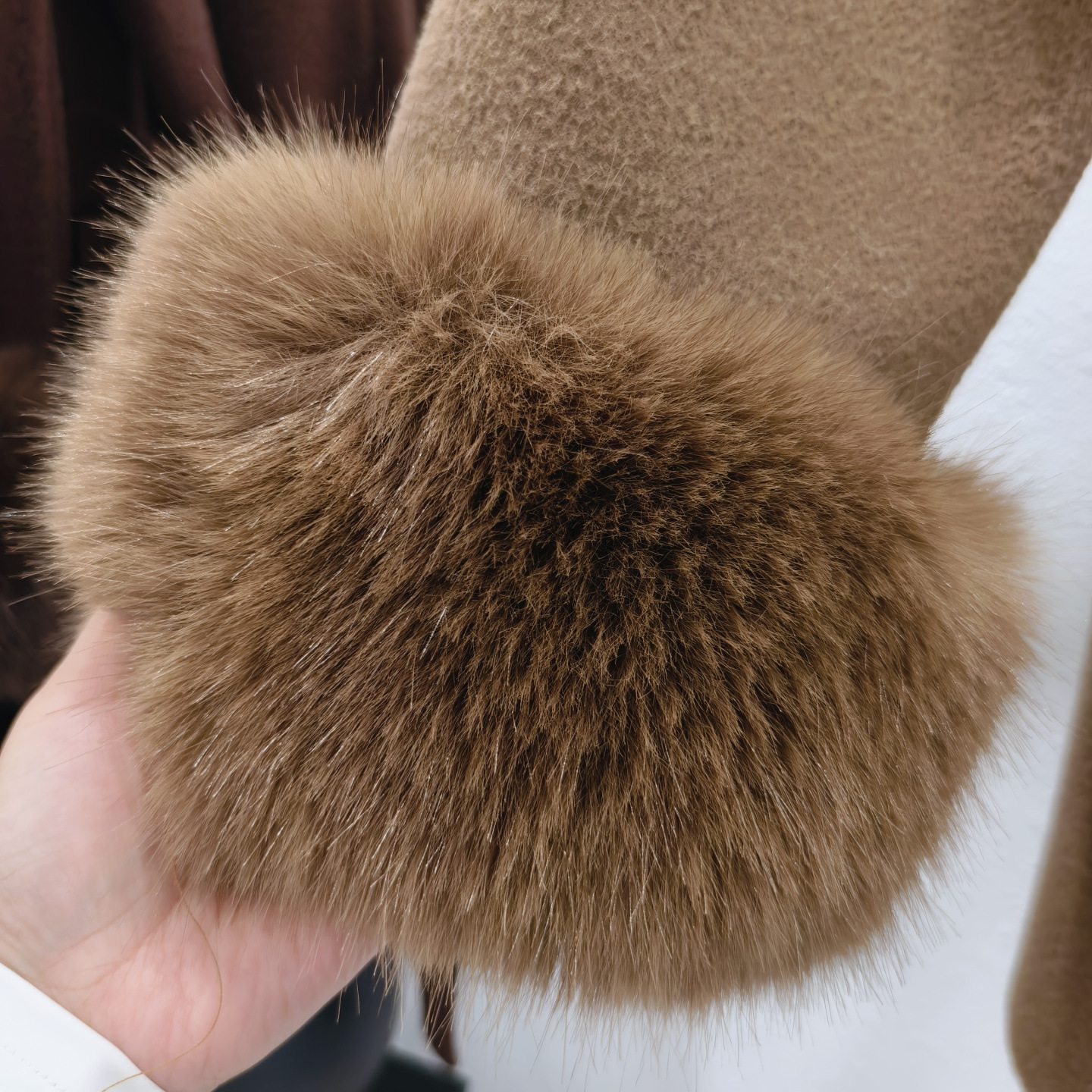 Stickad dubbelsidig ullrem sjalrock socialite höst- och vinterimitation rävpälskrage huva kofta ulljacka