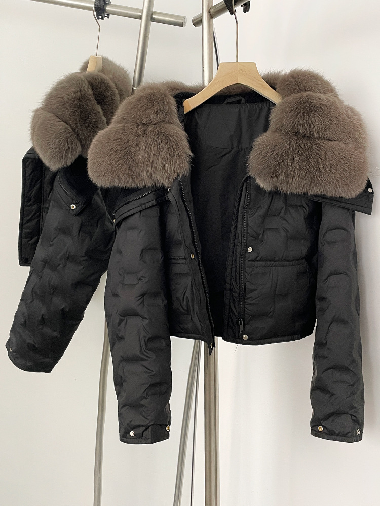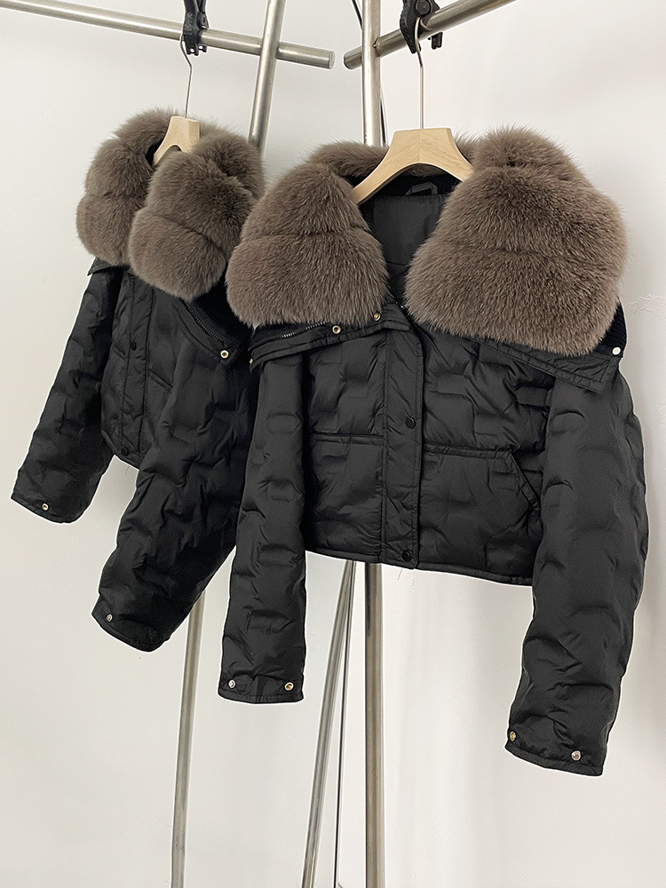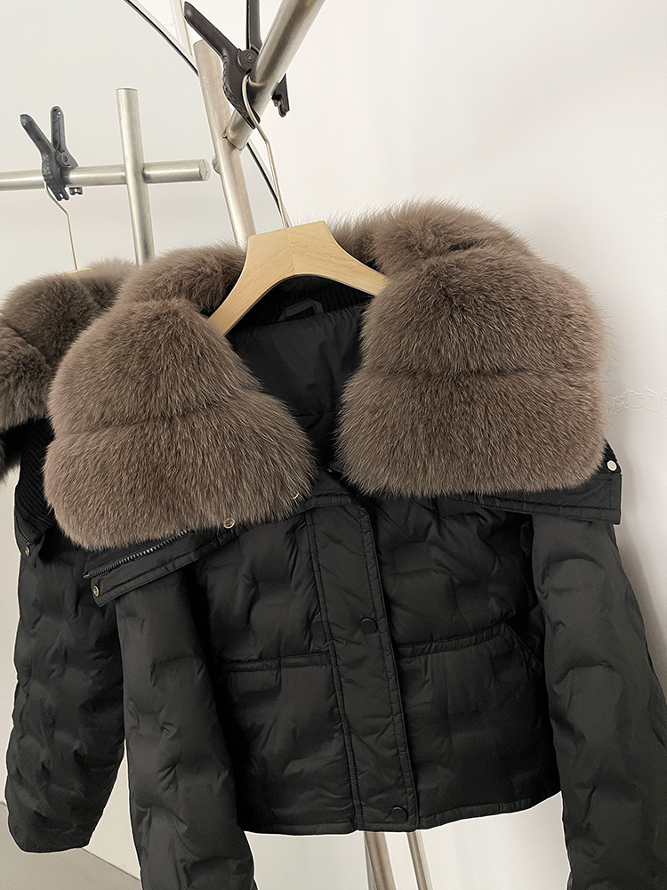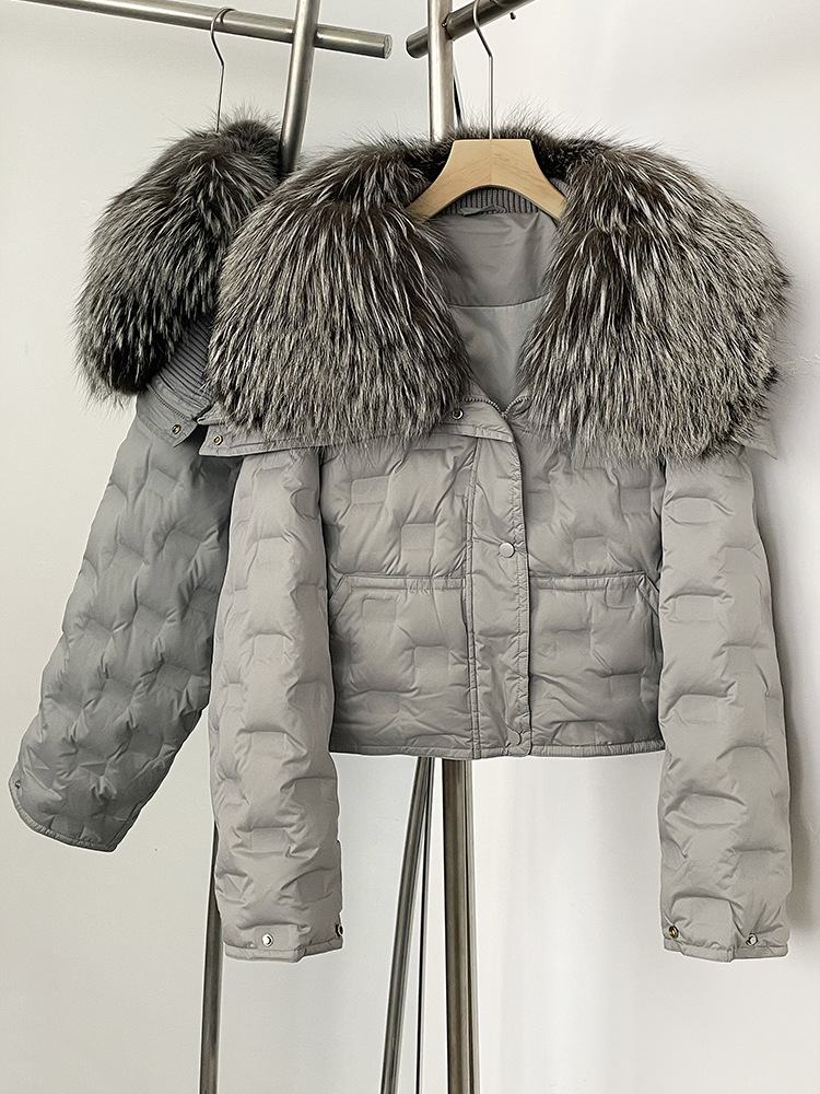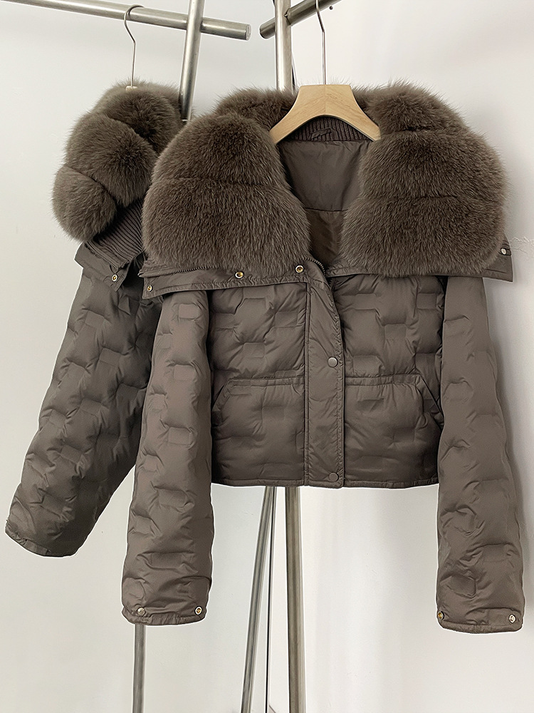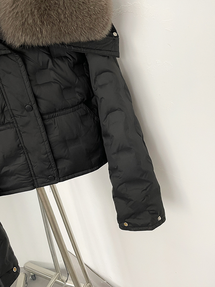 Super snygg koreansk version av storhårig kavaj kort dunjacka för kvinnors vinter explosion geometriska mönster design vit anka dunjacka