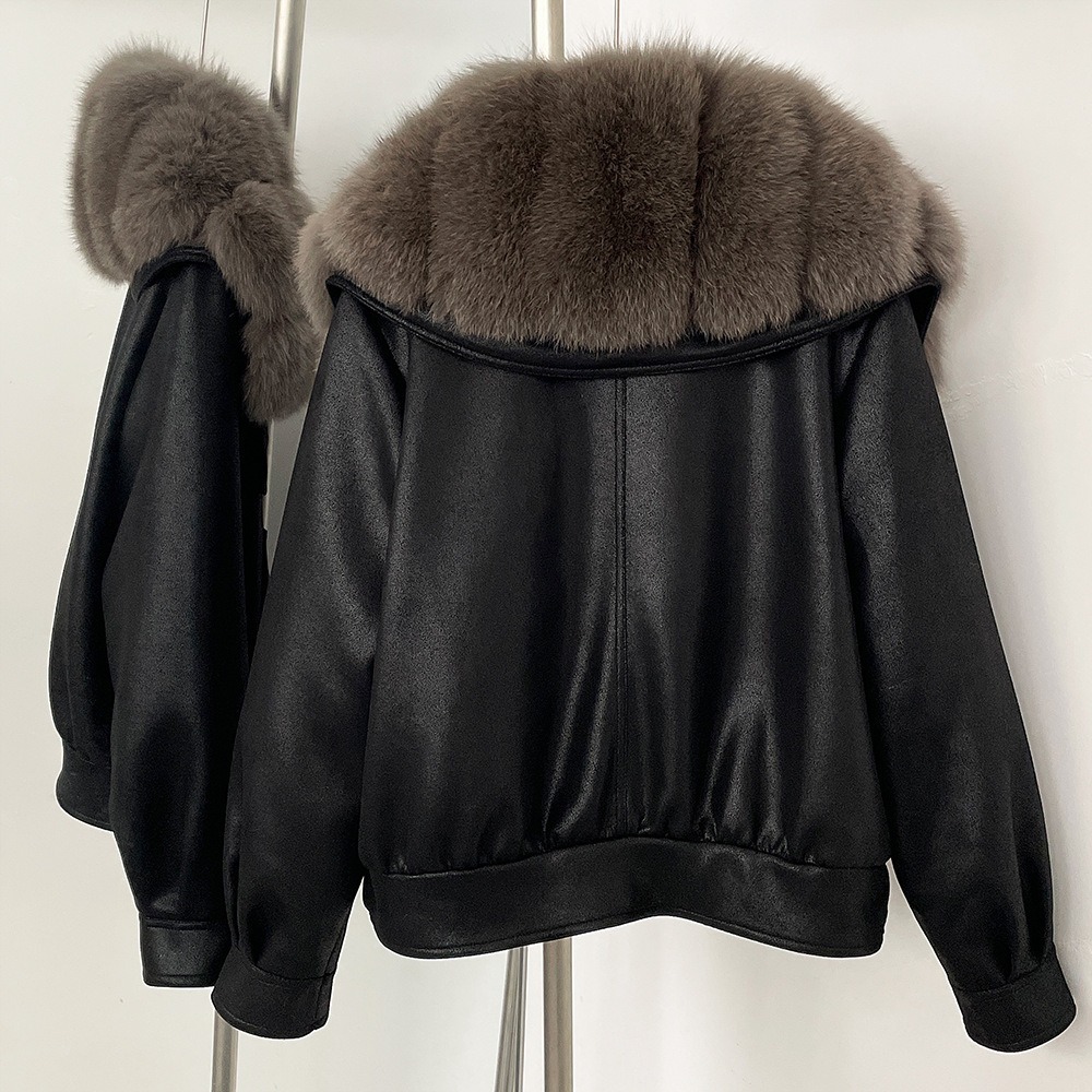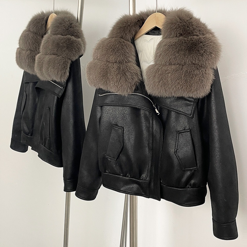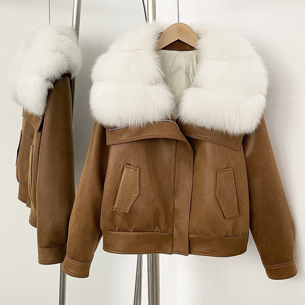 Vinter ny mocka räv pälskrage päls mocka ner liner kort lok ung kappa